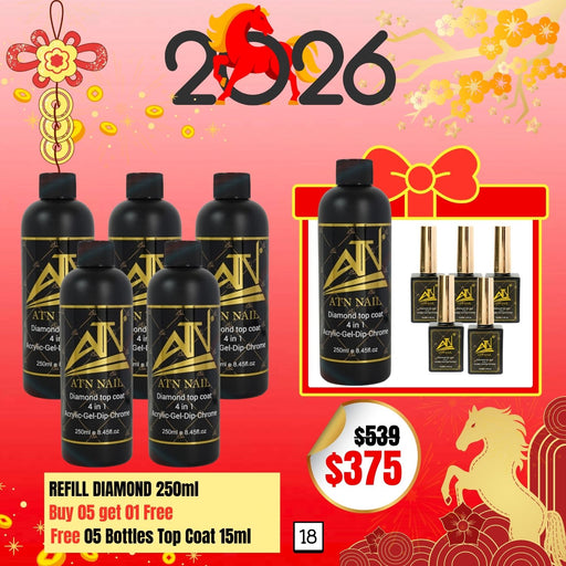 ATN DIAMOND Top Coat Product Description: Large Capacity: 15ml no-wipe gel top coat that protects the nail surface, prevents peeling, and ensures...