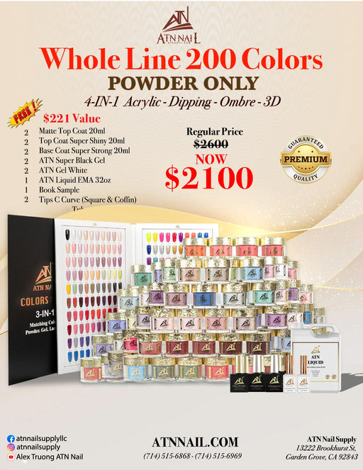 ATN Nail Supply6 reviews4-IN-1 POWDER: ACRYLIC, DIPPING, OMBRE, 3D SEE TRI-O 3-IN-1: Powder - Gel - Lacquer ***Refill more than 10 colors, please call for good price...